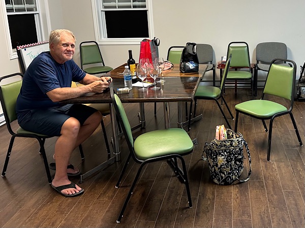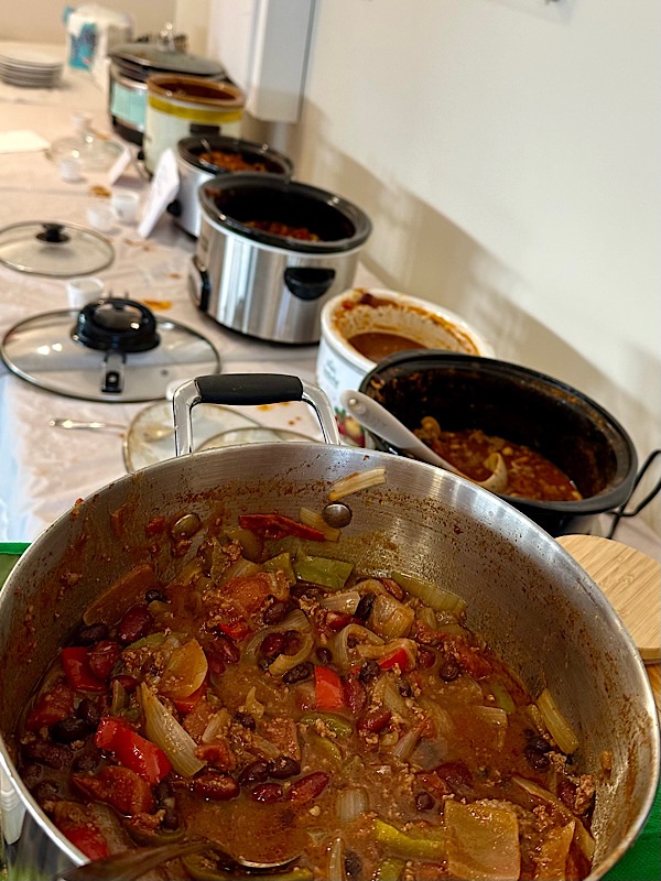Friday, August 8, 2025 went to a few “nicknack” shops on Water Street. Had lunch at Boxing Rock Brewing Company, a local brewery. For dinner we participated, in the tasting of a chili competition, at the Shelburne Yacht Club. The event was a fundraiser for the club. There were 15 different chilies to taste. We chose the one voted in second place, similar to the winning one with less heat.