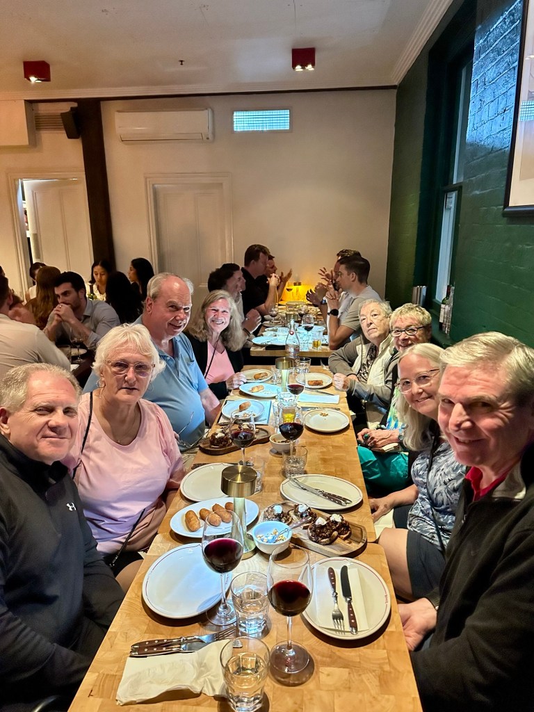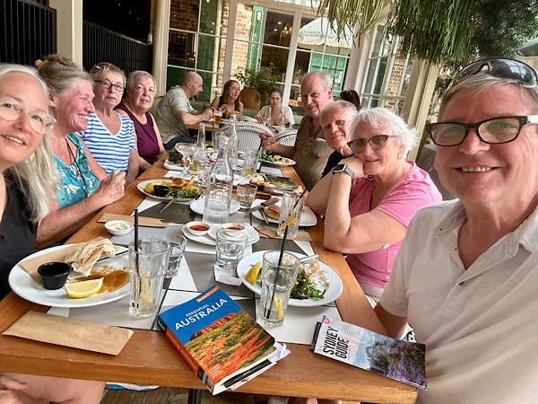 Day 2. The remaining of our group arrived today, Ken, Sheila, Shirley and Wendy. We spent the day aboard a double decker hop on hop off city tour bus, that also included a ferry boat ride with a stop at Watson’s Bay. We disembarked the ferry there and had lunch at Doyle’s on the Beach.