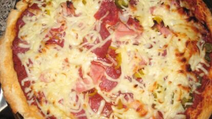 For dinner I made deep dish Beer Pizza Crust pizza, baked it in a cast iron pan. Transferred it to a baking sheet to serve because it wasn’t so hot.